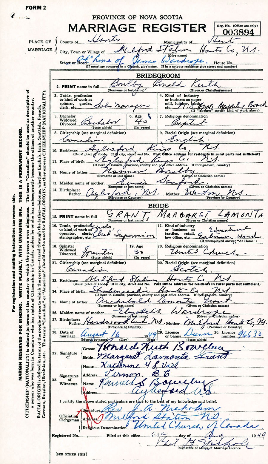 Registration: Year: 1949 number: 003894