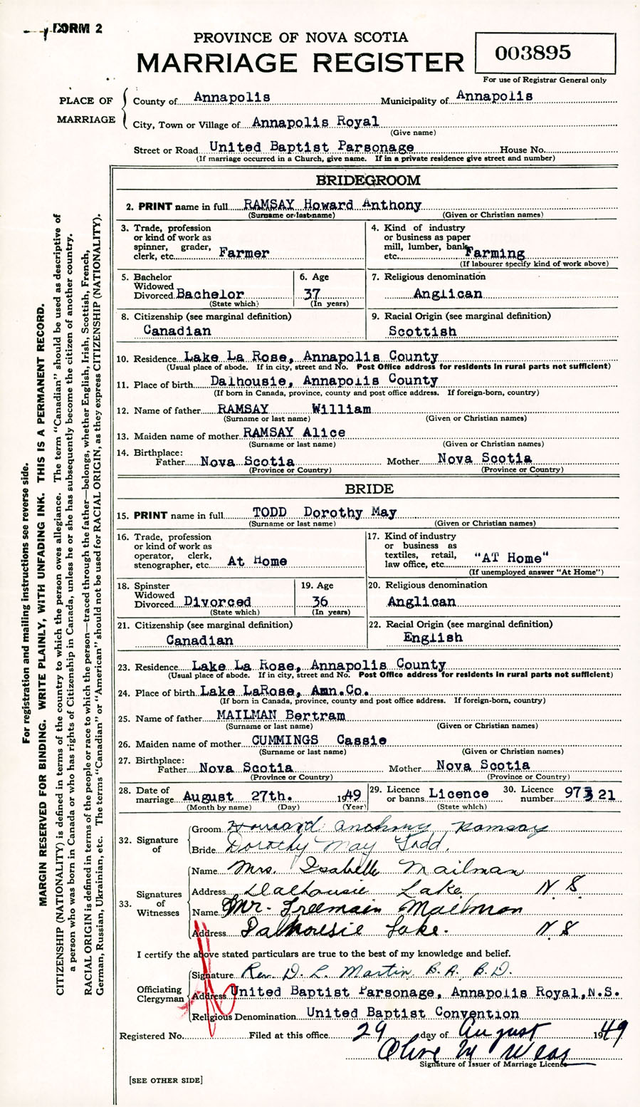 Registration: Year: 1949 number: 003895