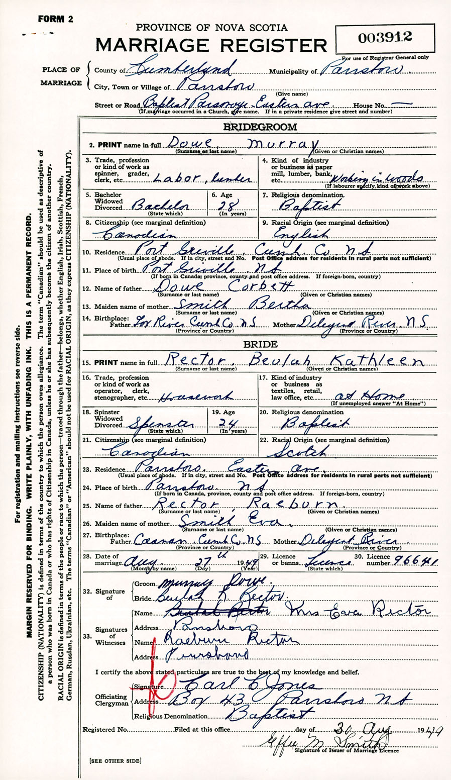 Registration: Year: 1949 number: 003912
