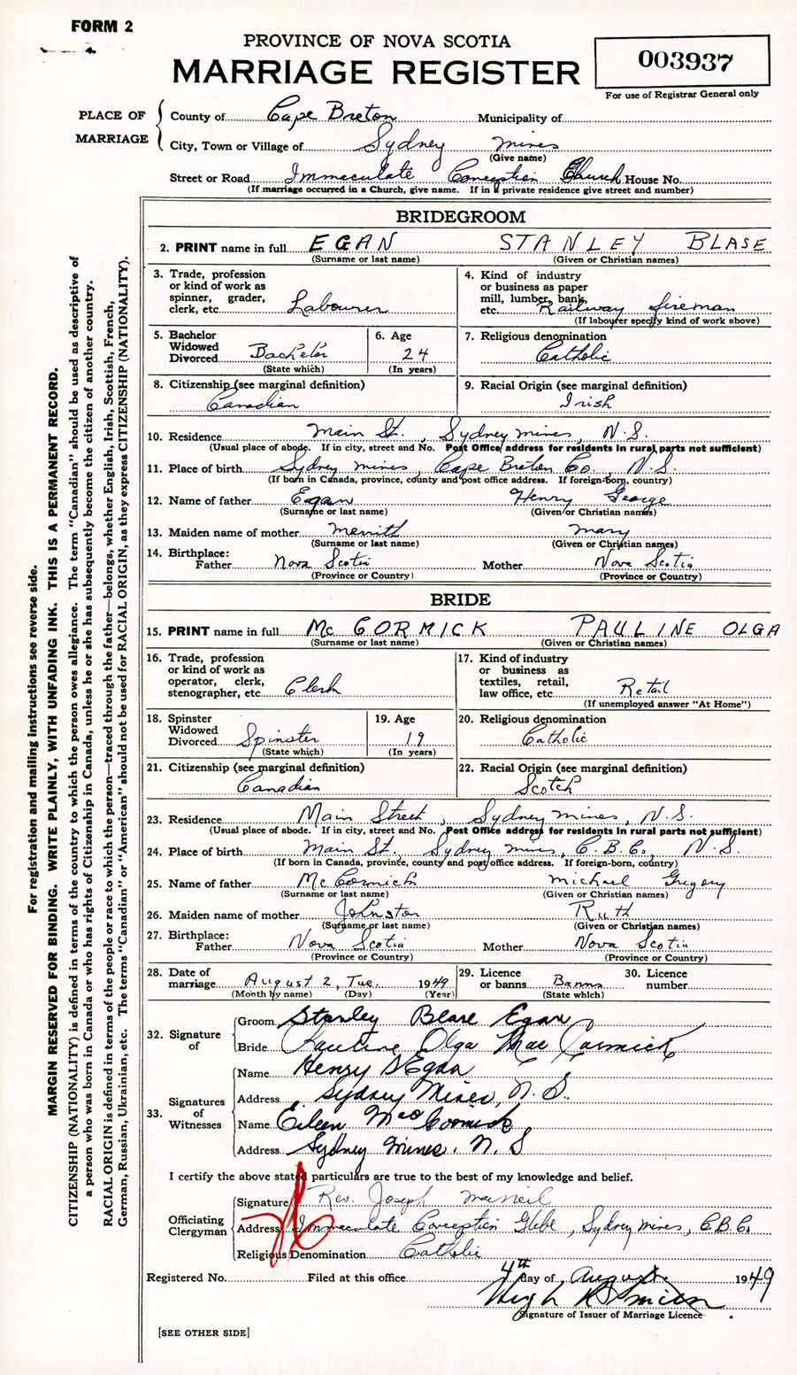 Registration: Year: 1949 number: 003937