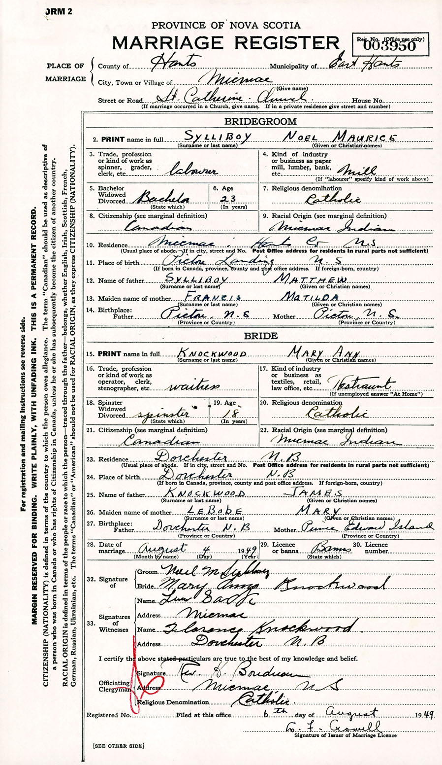 Registration: Year: 1949 number: 003950