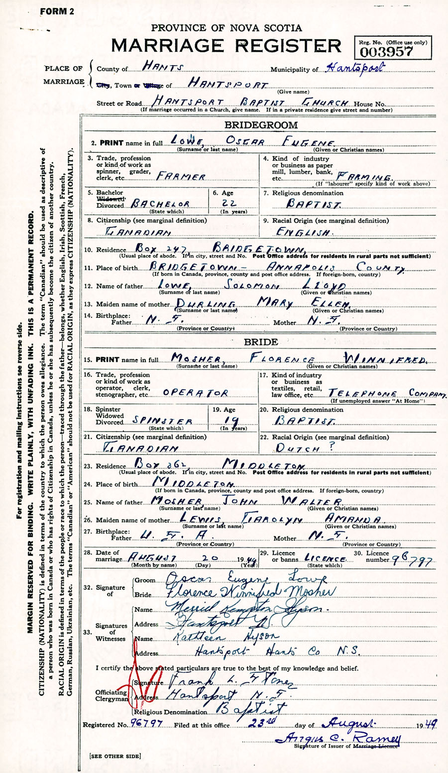 Registration: Year: 1949 number: 003957