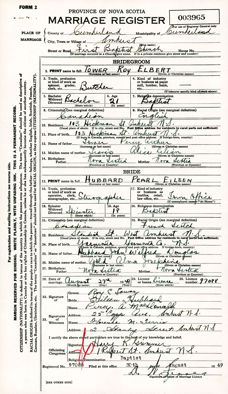 Registration: Year: 1949 number: 003965