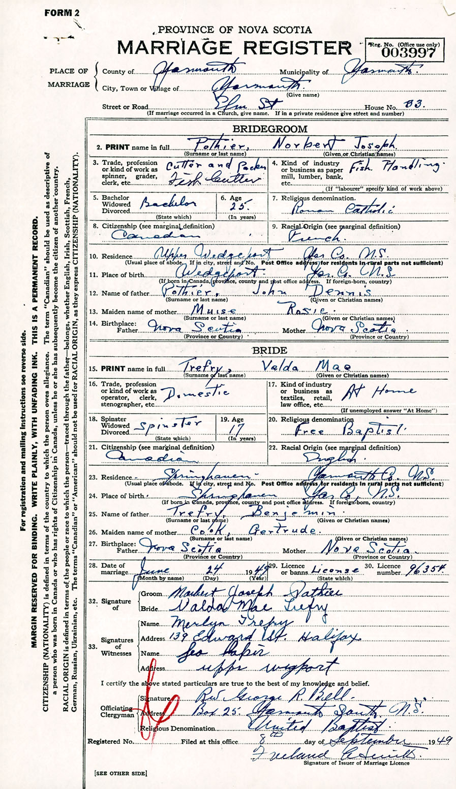 Registration: Year: 1949 number: 003997