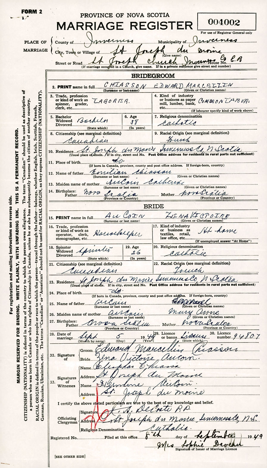 Registration: Year: 1949 number: 004002