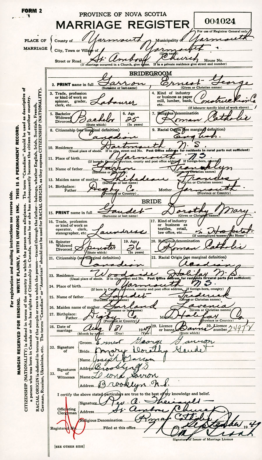 Registration: Year: 1949 number: 004024