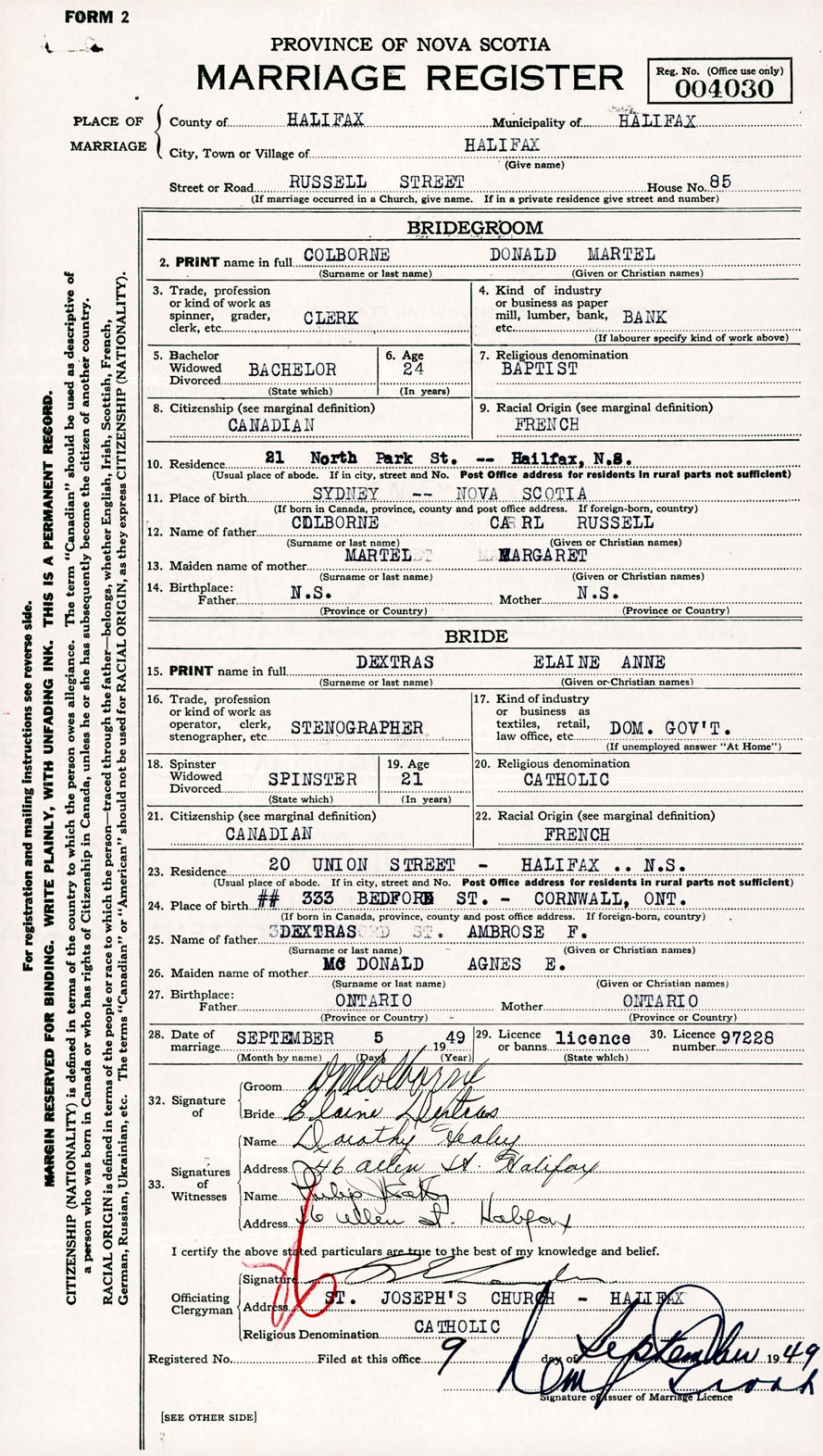 Registration: Year: 1949 number: 004030