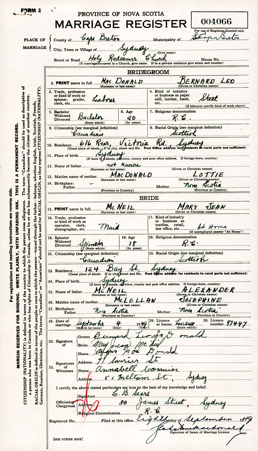 Registration: Year: 1949 number: 004066