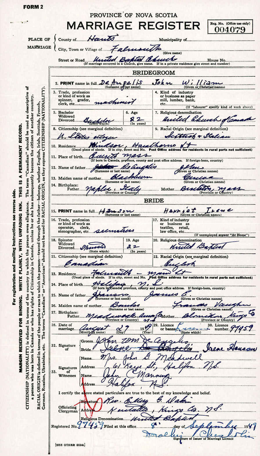 Registration: Year: 1949 number: 004079
