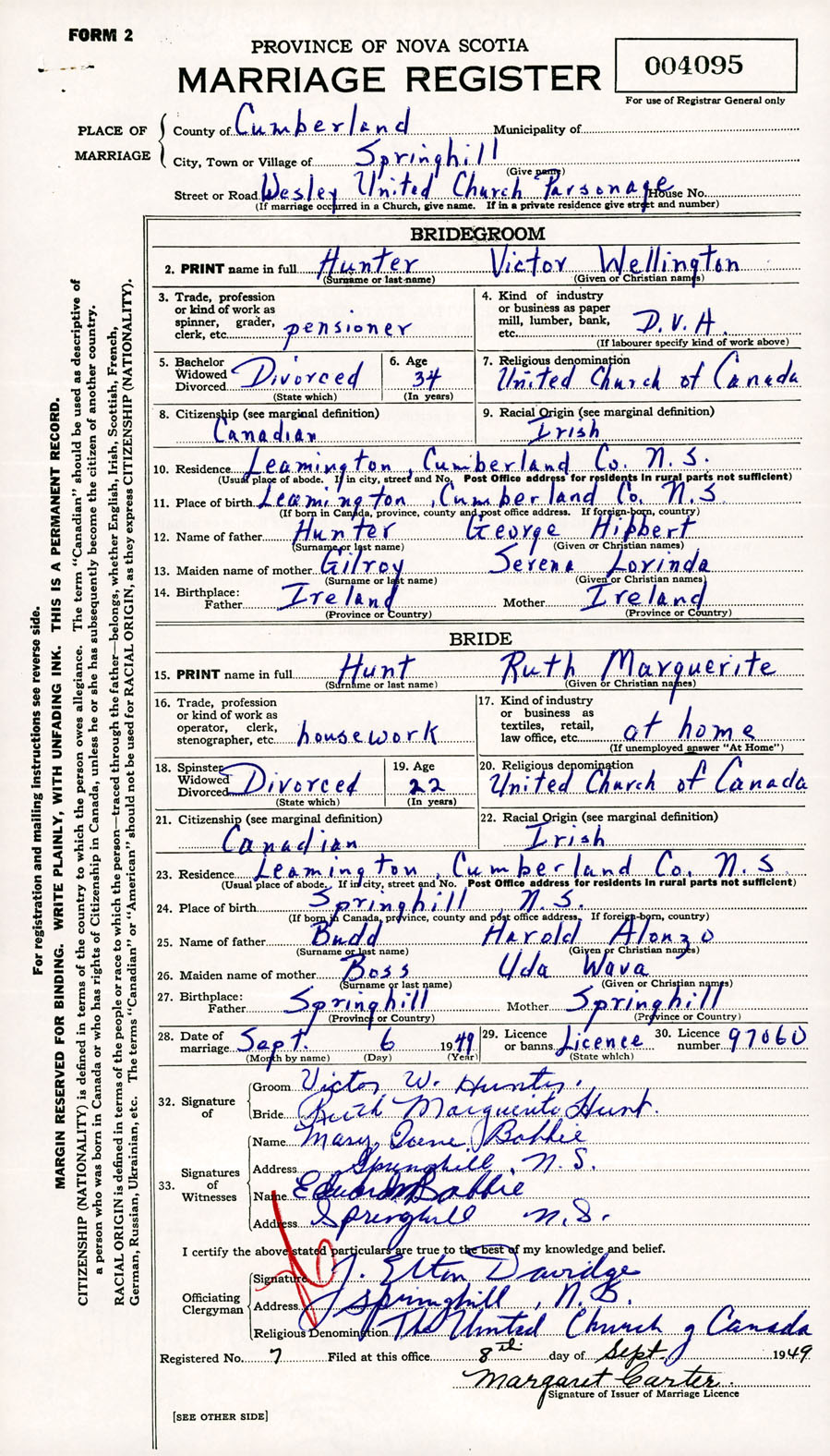 Registration: Year: 1949 number: 004095