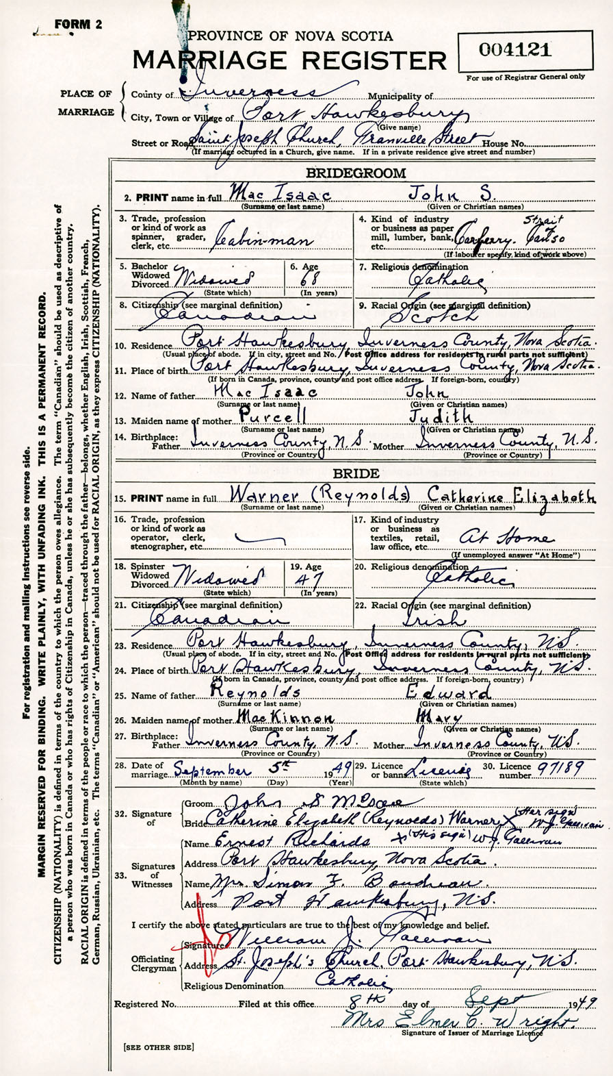 Registration: Year: 1949 number: 004121