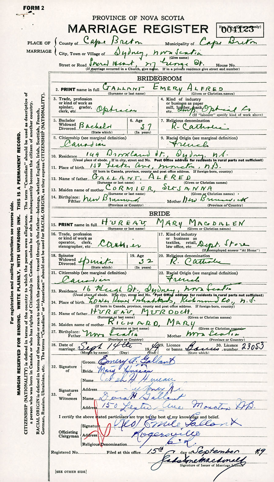 Registration: Year: 1949 number: 004123