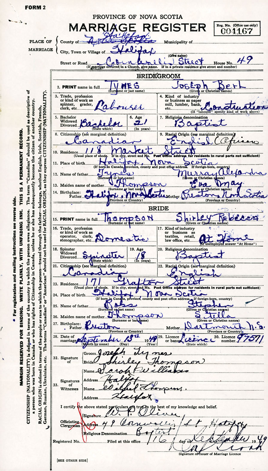 Registration: Year: 1949 number: 004167