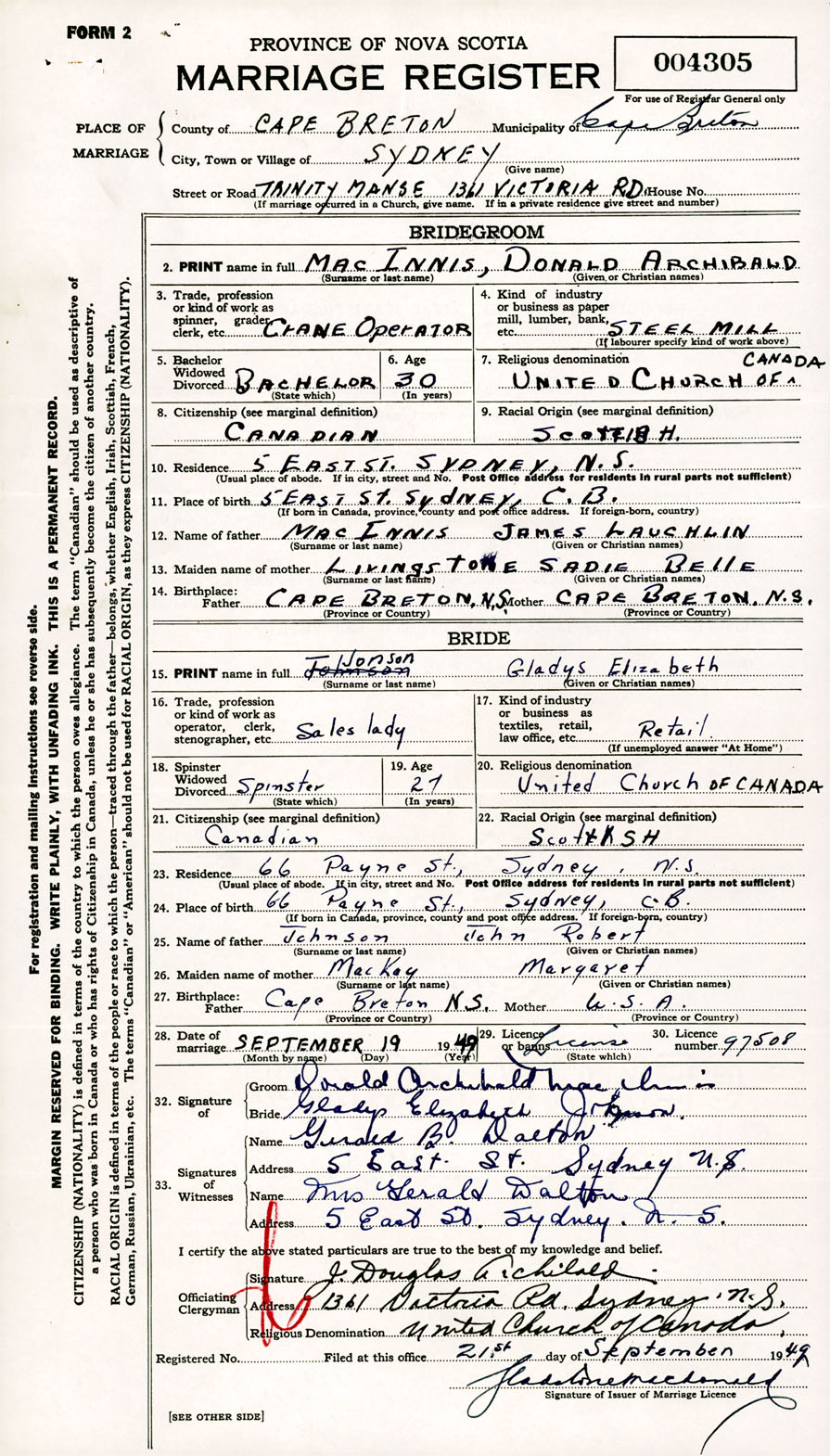 Registration: Year: 1949 number: 004305