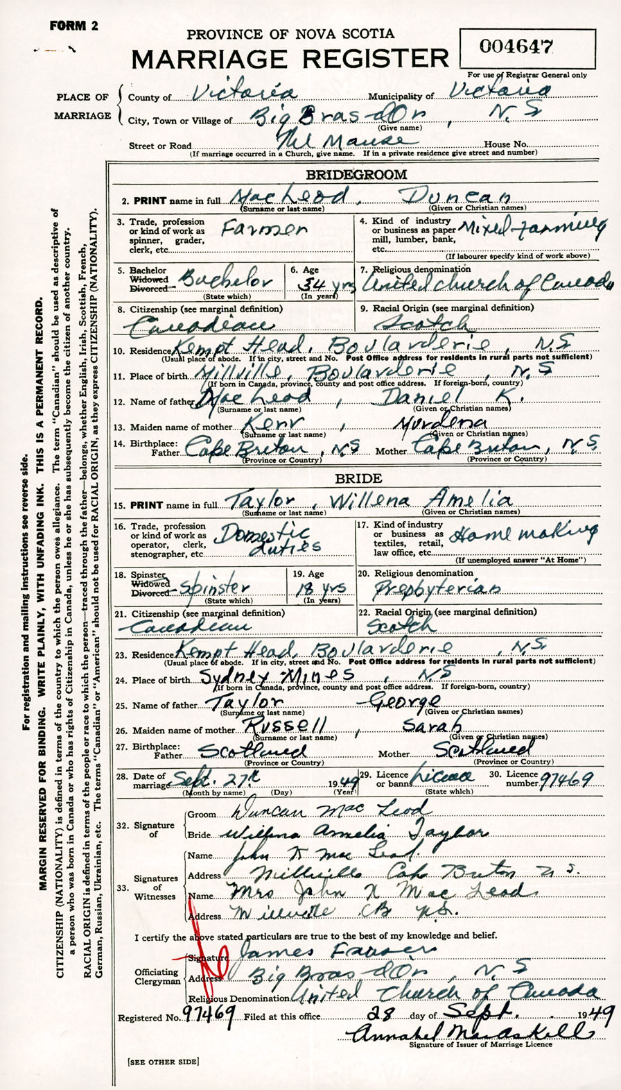 Registration: Year: 1949 number: 004647