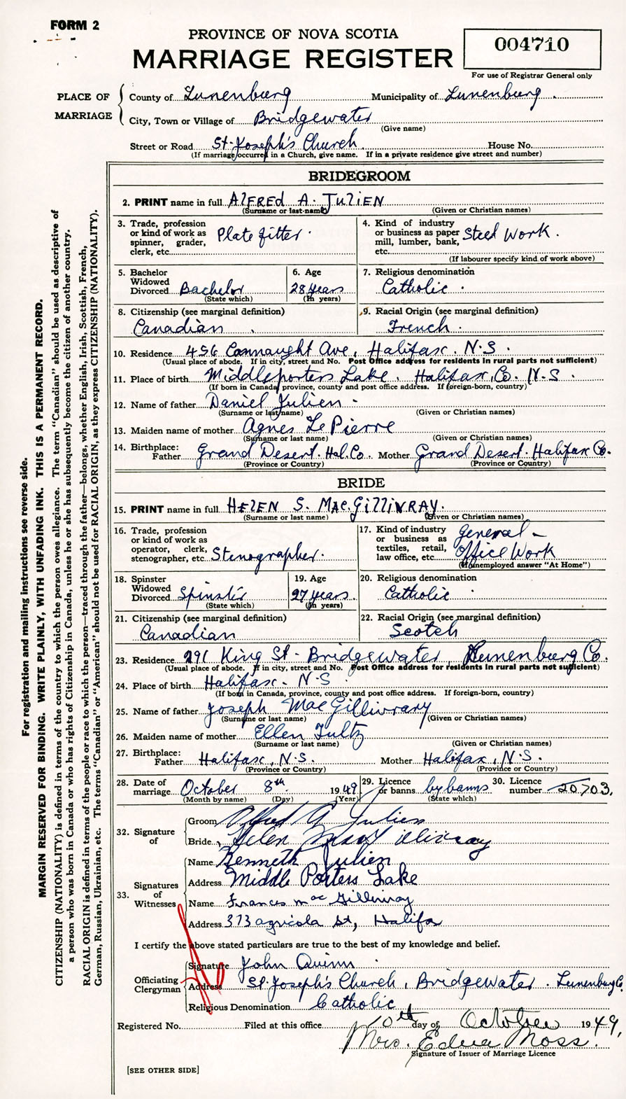 Registration: Year: 1949 number: 004710