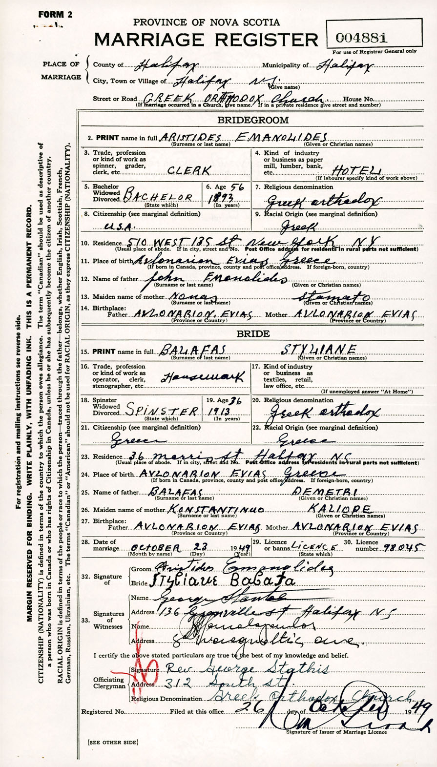Registration: Year: 1949 number: 004881