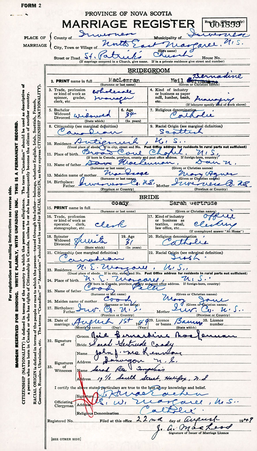 Registration: Year: 1949 number: 004899