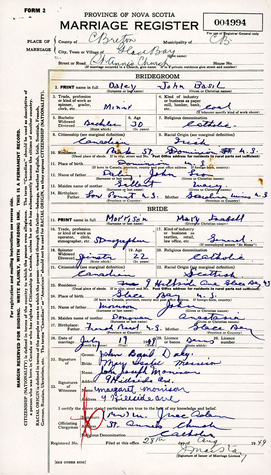 Registration: Year: 1949 number: 004994