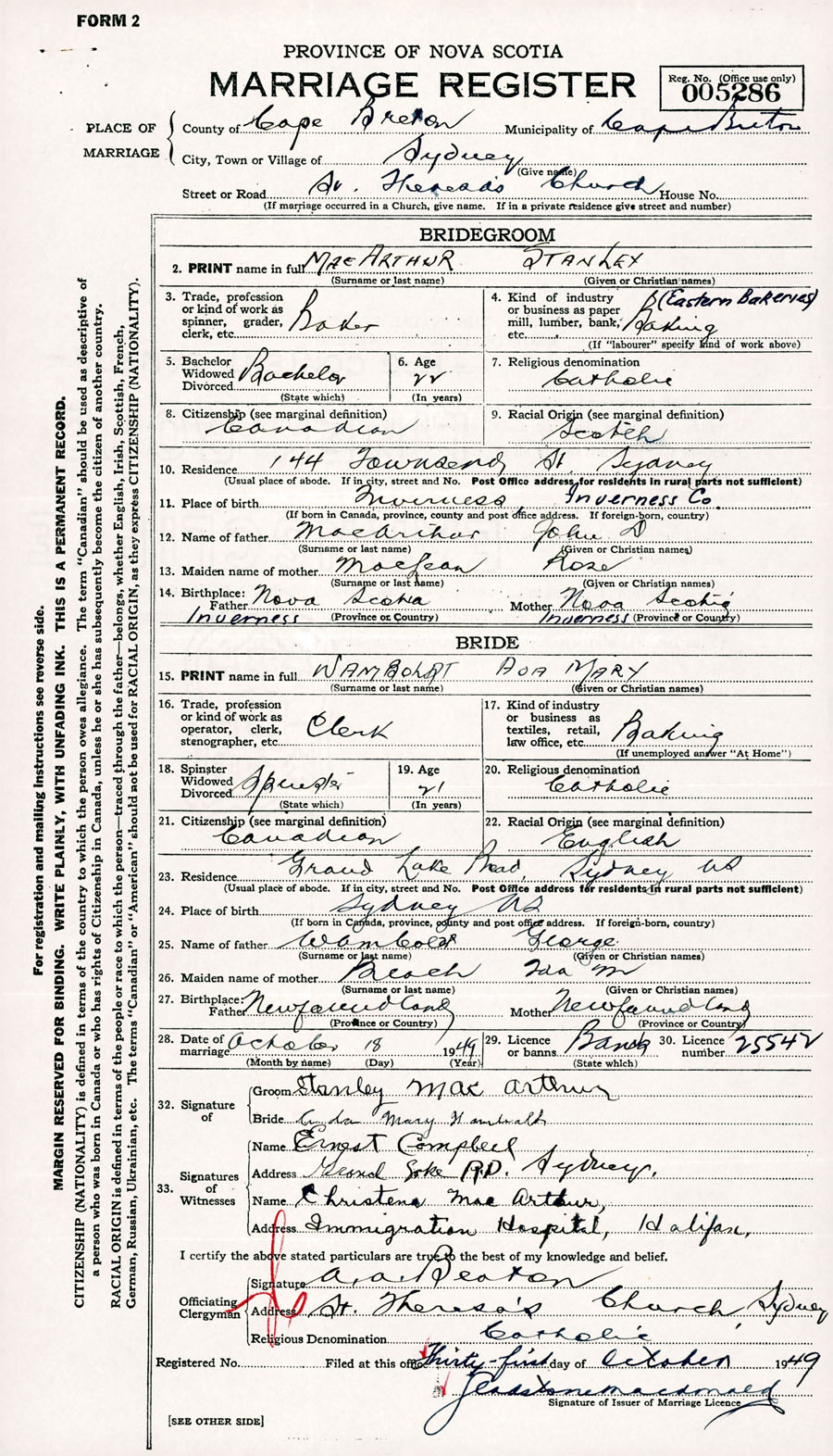 Registration: Year: 1949 number: 005286