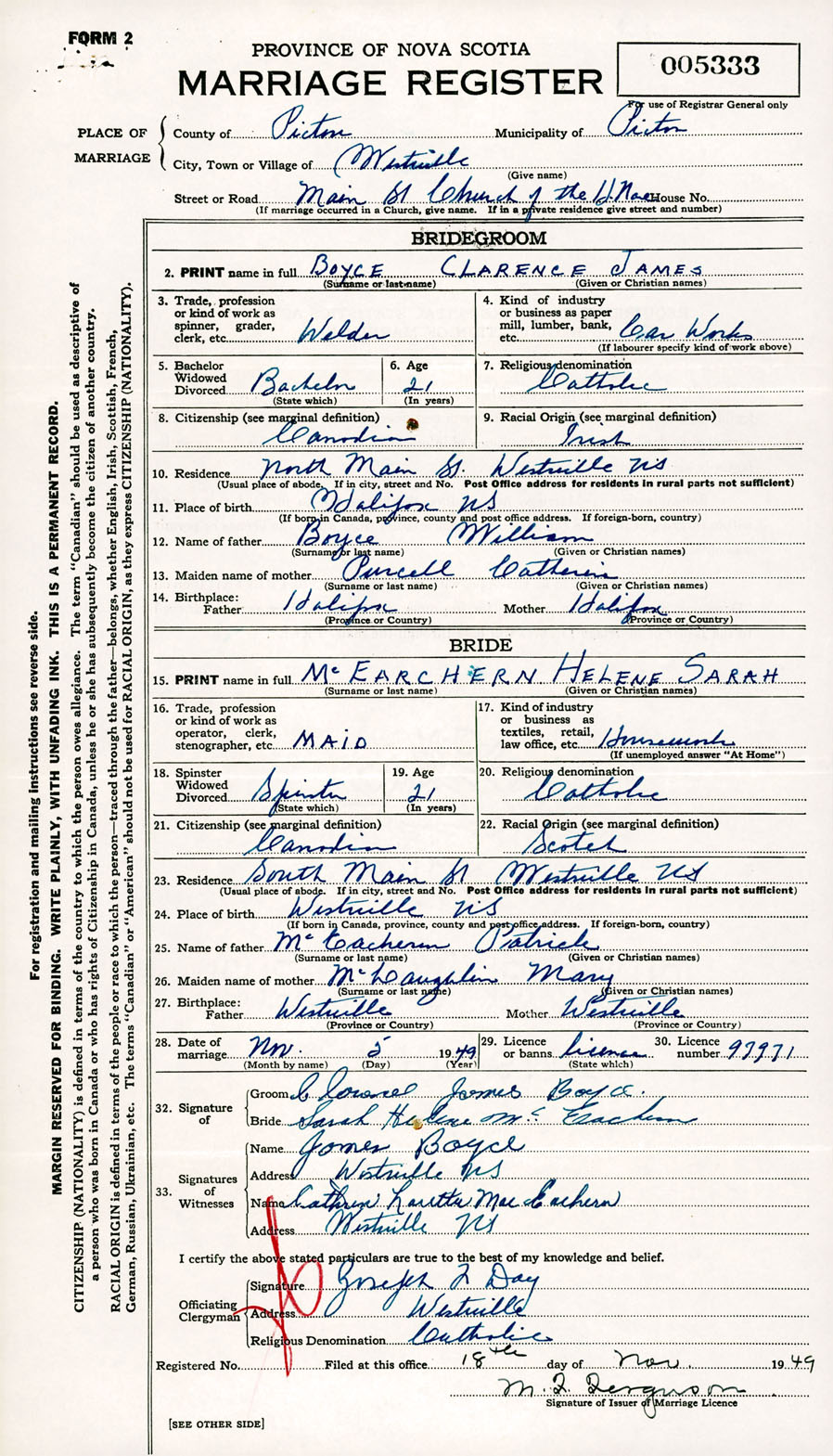 Registration: Year: 1949 number: 005333
