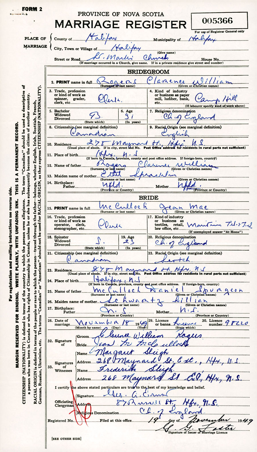 Registration: Year: 1949 number: 005366