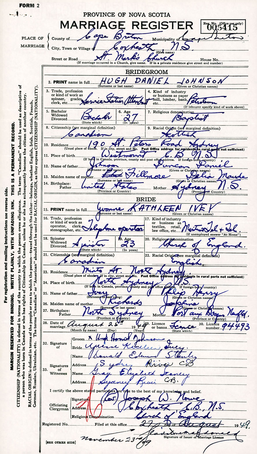 Registration: Year: 1949 number: 005415
