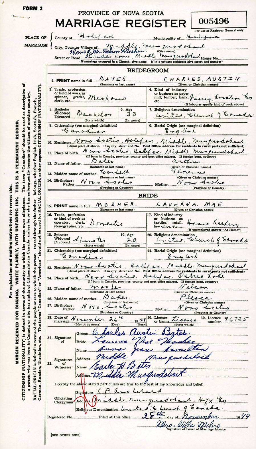 Registration: Year: 1949 number: 005496