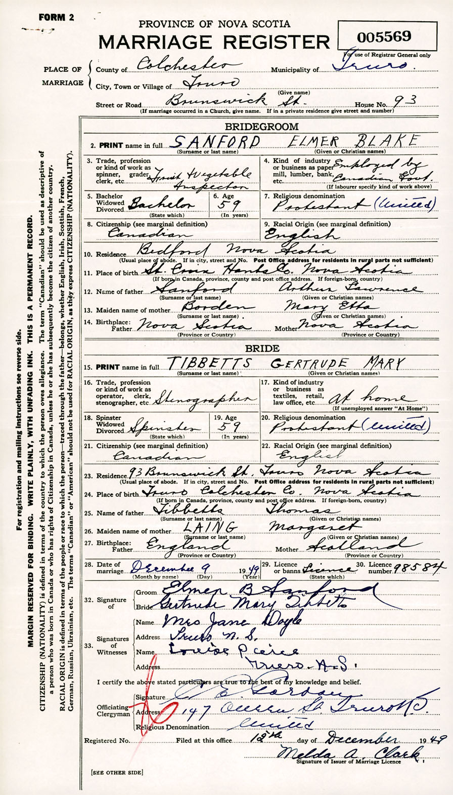 Registration: Year: 1949 number: 005569