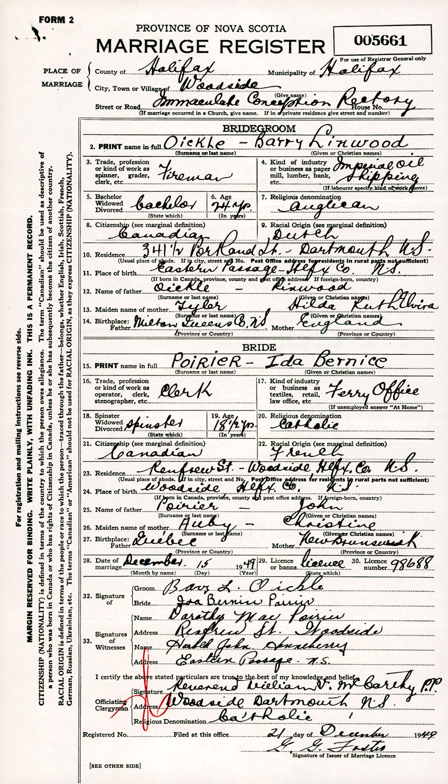 Registration: Year: 1949 number: 005661