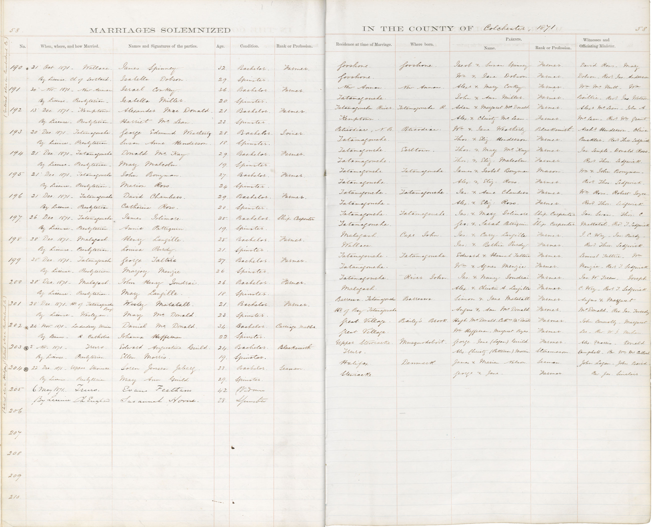 Registration: Year: 1871 book: 1806 page: 58 number: 205