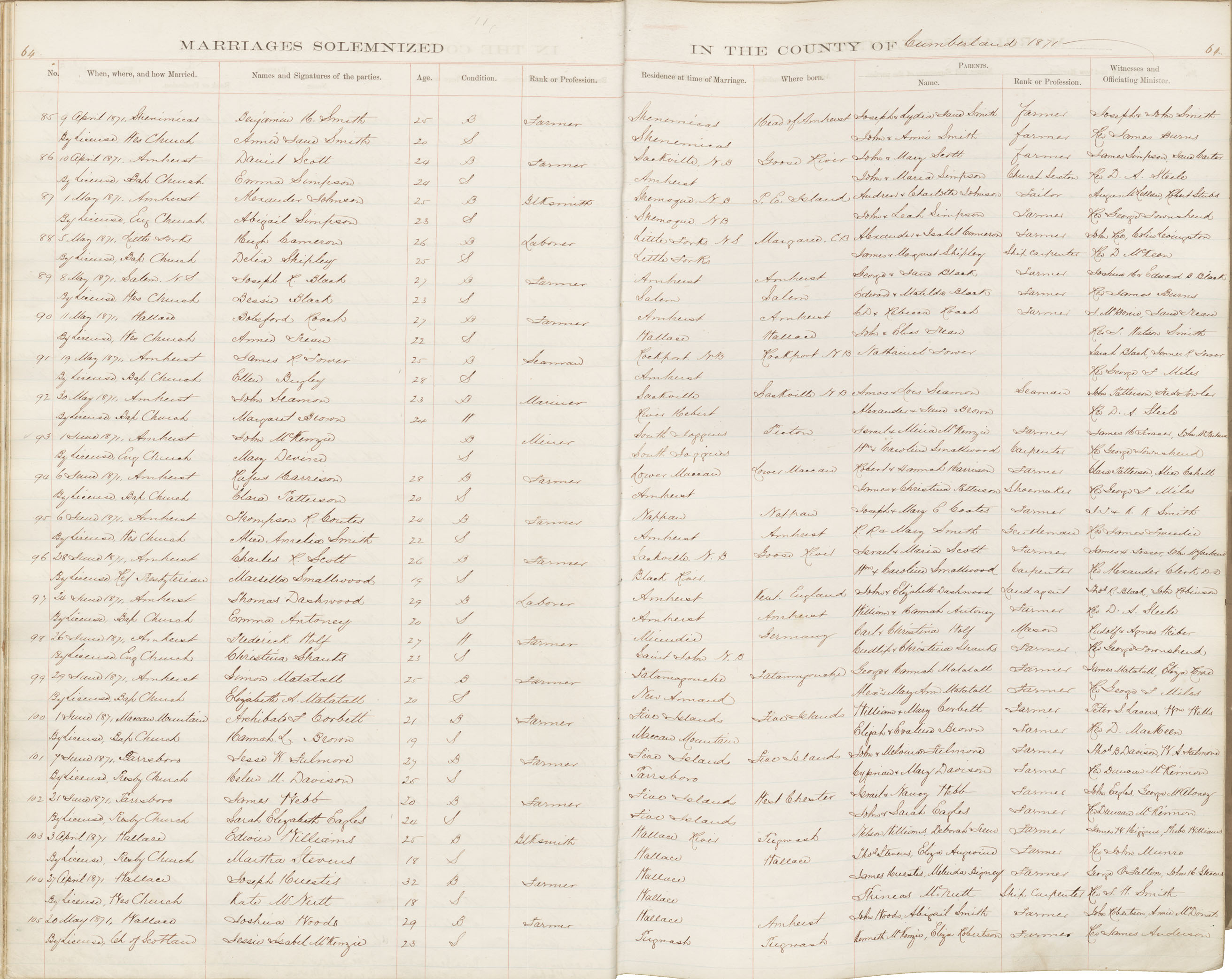 Registration: Year: 1871 book: 1809 page: 64 number: 105