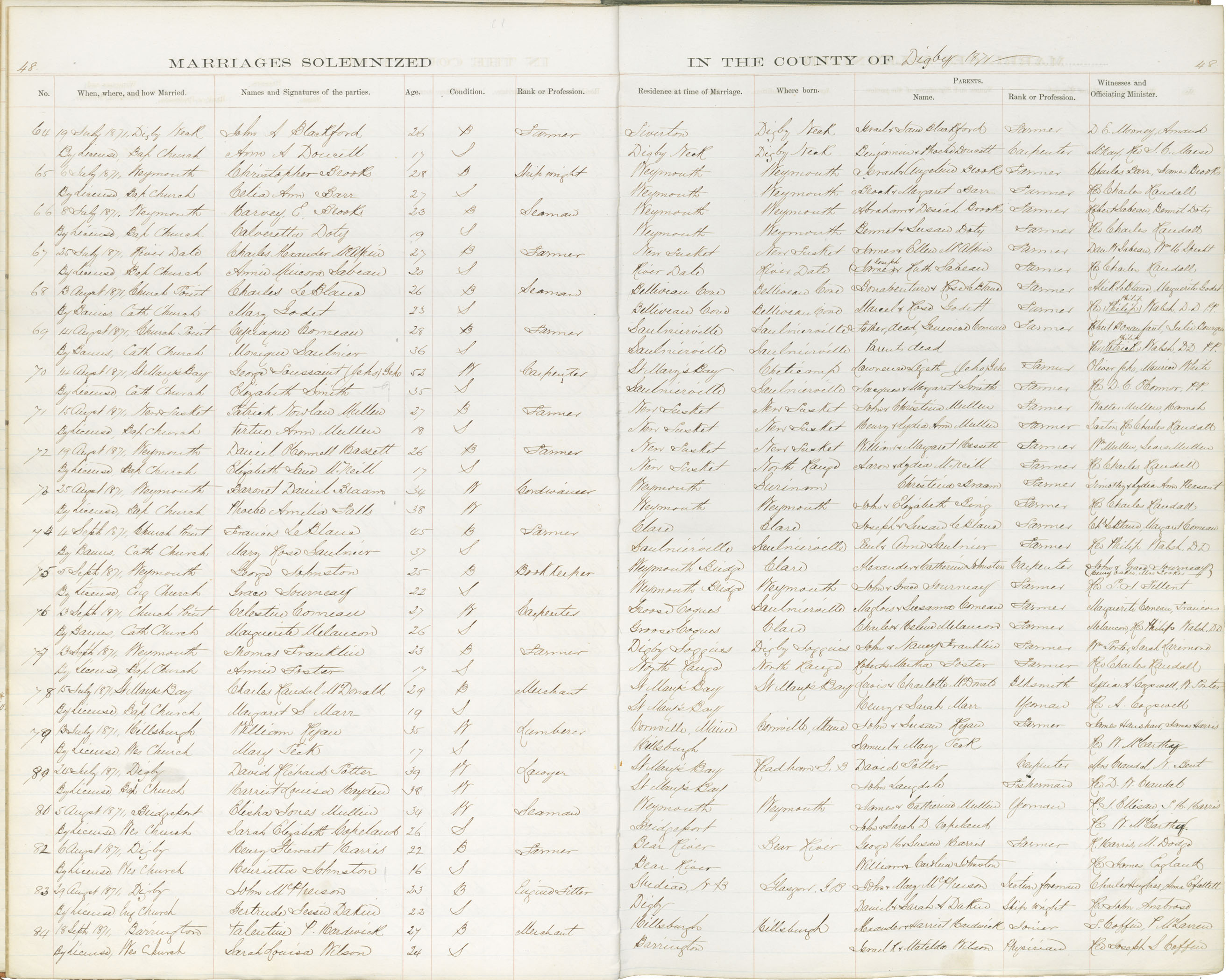 Registration: Year: 1871 book: 1812 page: 48 number: 64