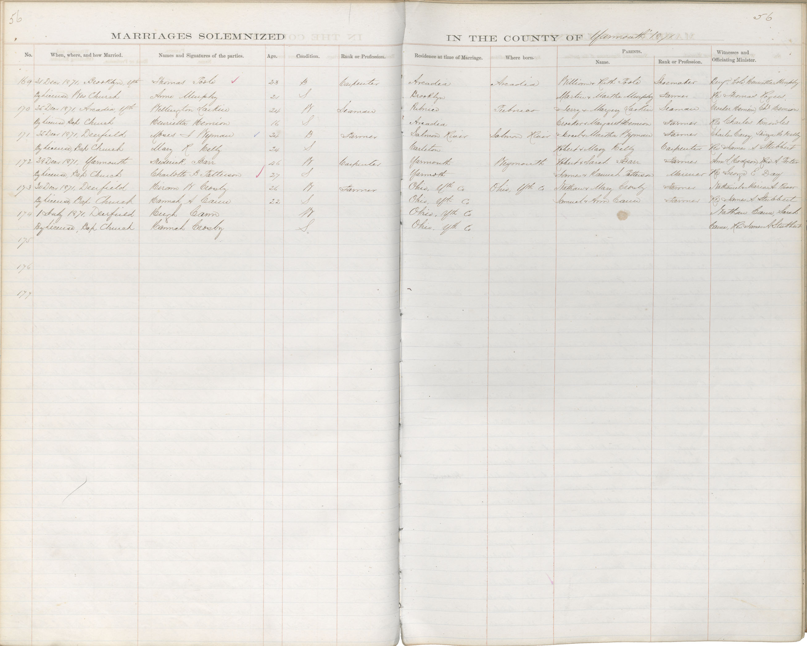 Registration: Year: 1871 book: 1839 page: 56 number: 169