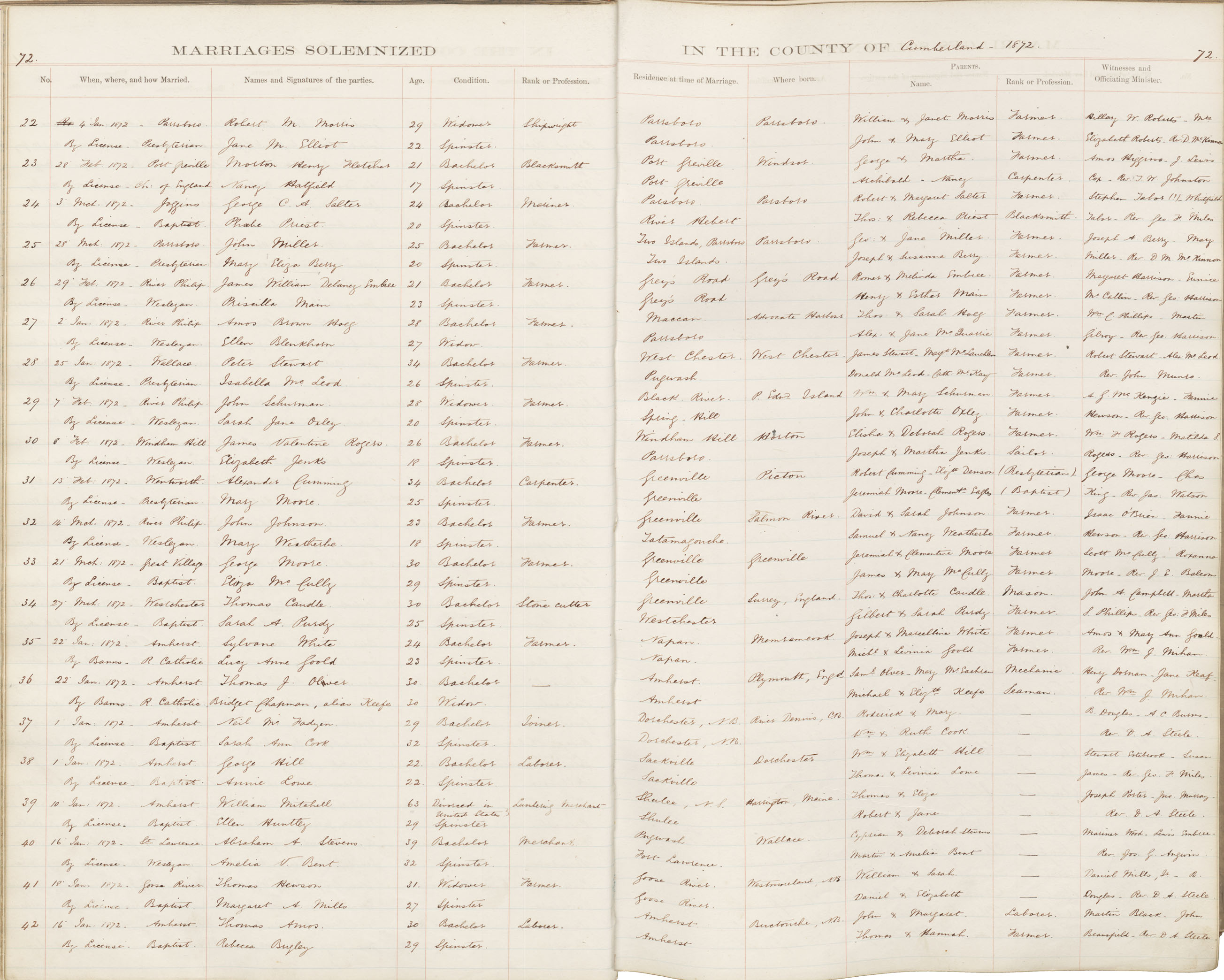 Registration: Year: 1872 book: 1809 page: 72 number: 22