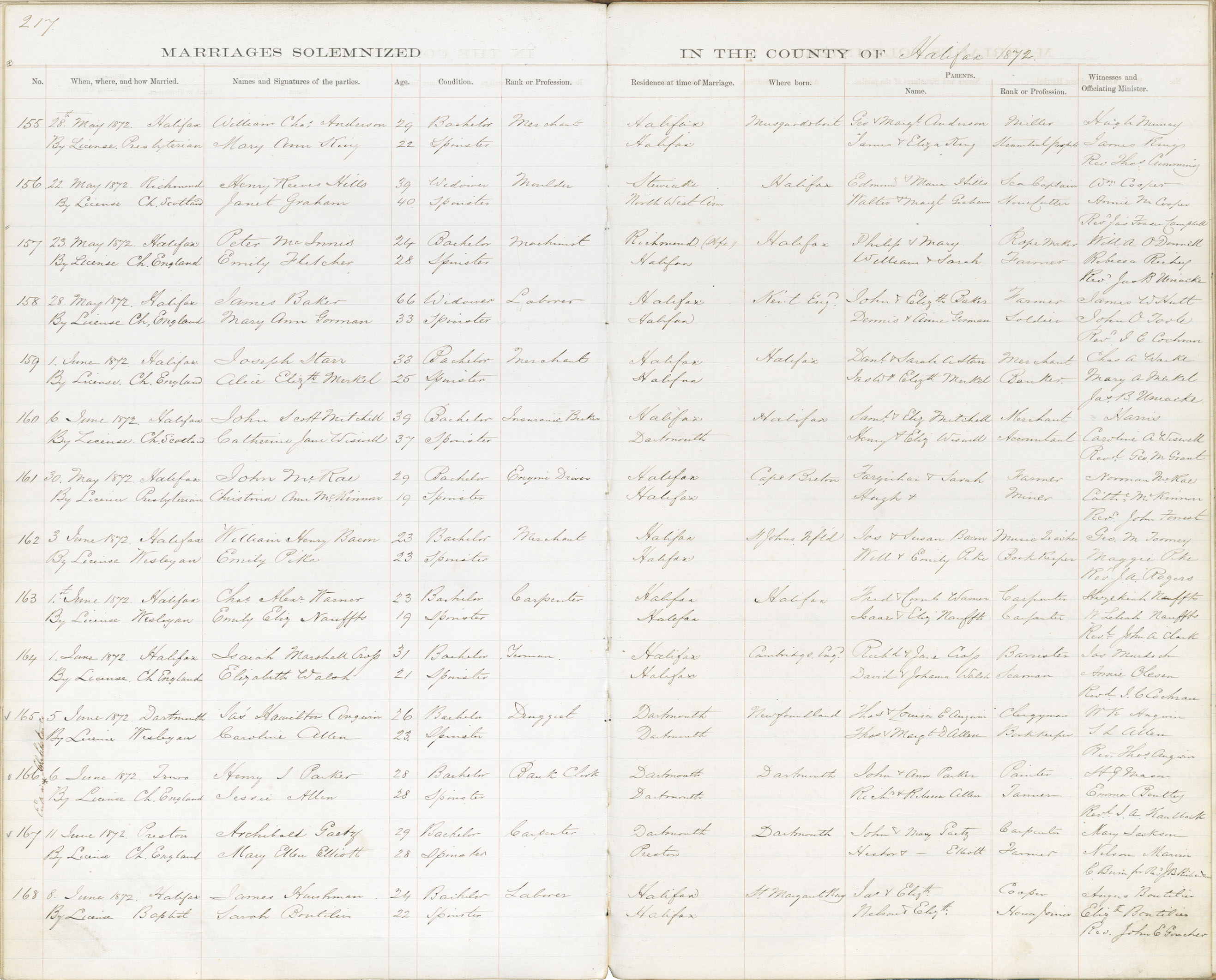 Registration: Year: 1872 book: 1815 page: 217 number: 168