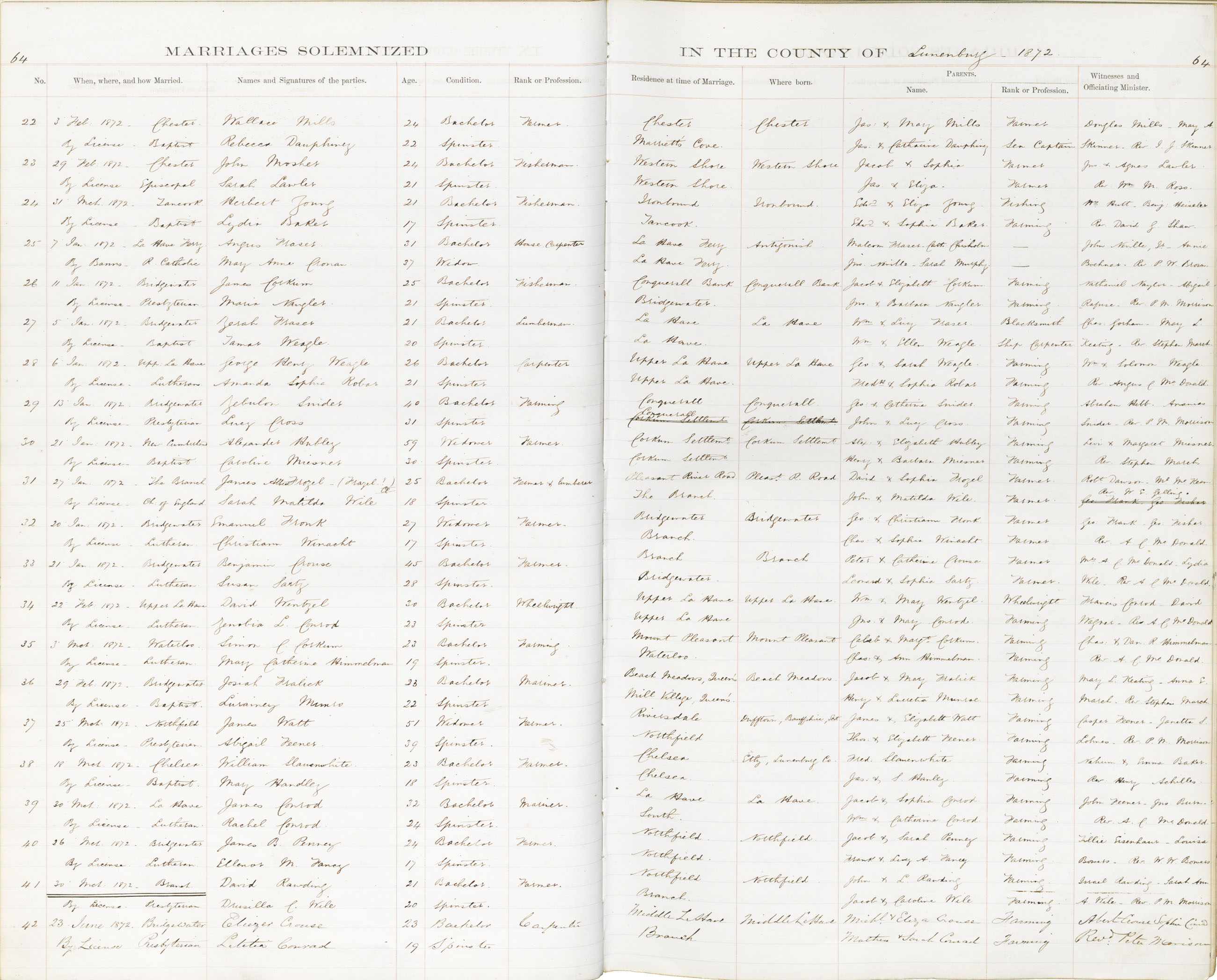 Registration: Year: 1872 book: 1828 page: 64 number: 22