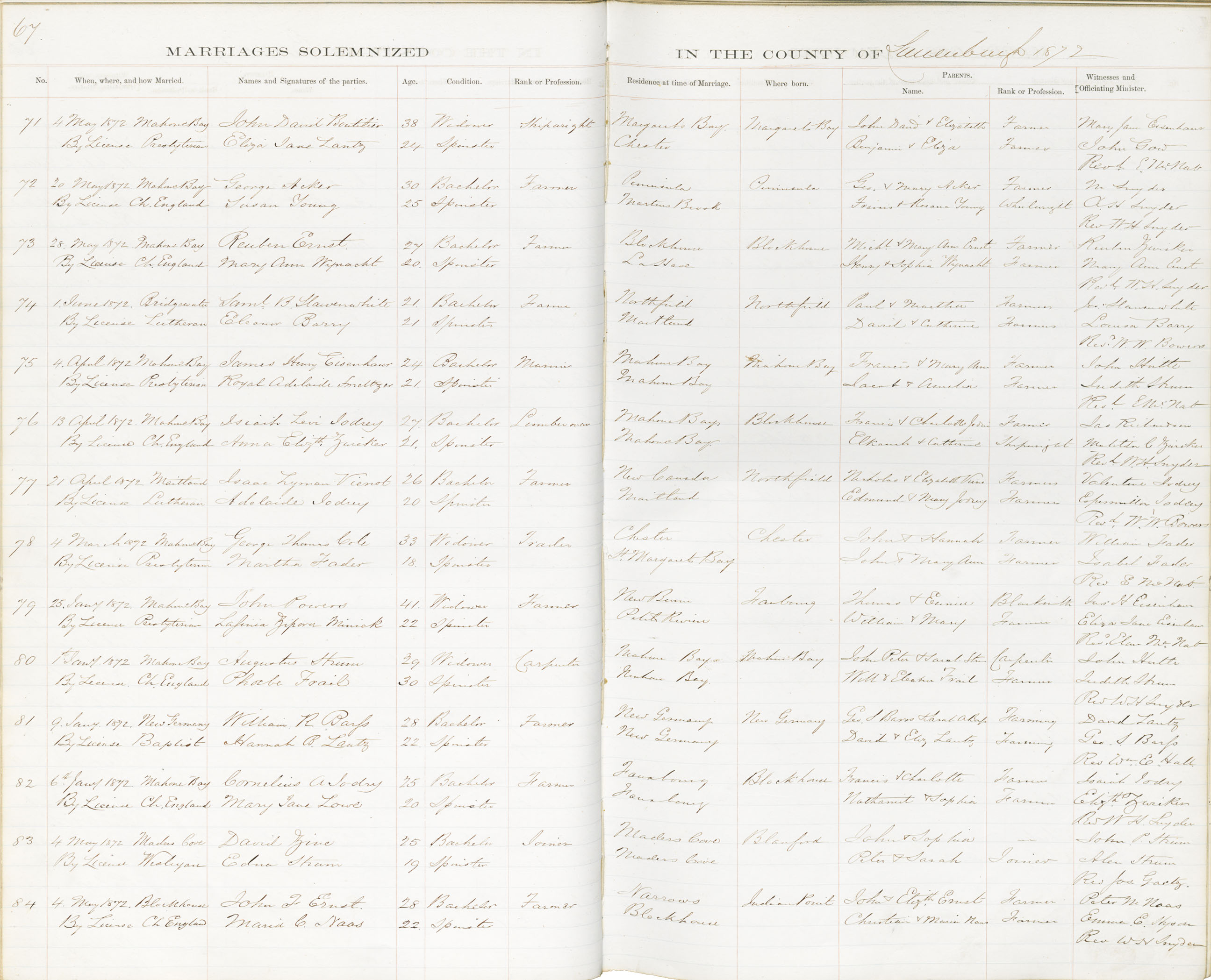 Registration: Year: 1872 book: 1828 page: 67 number: 71