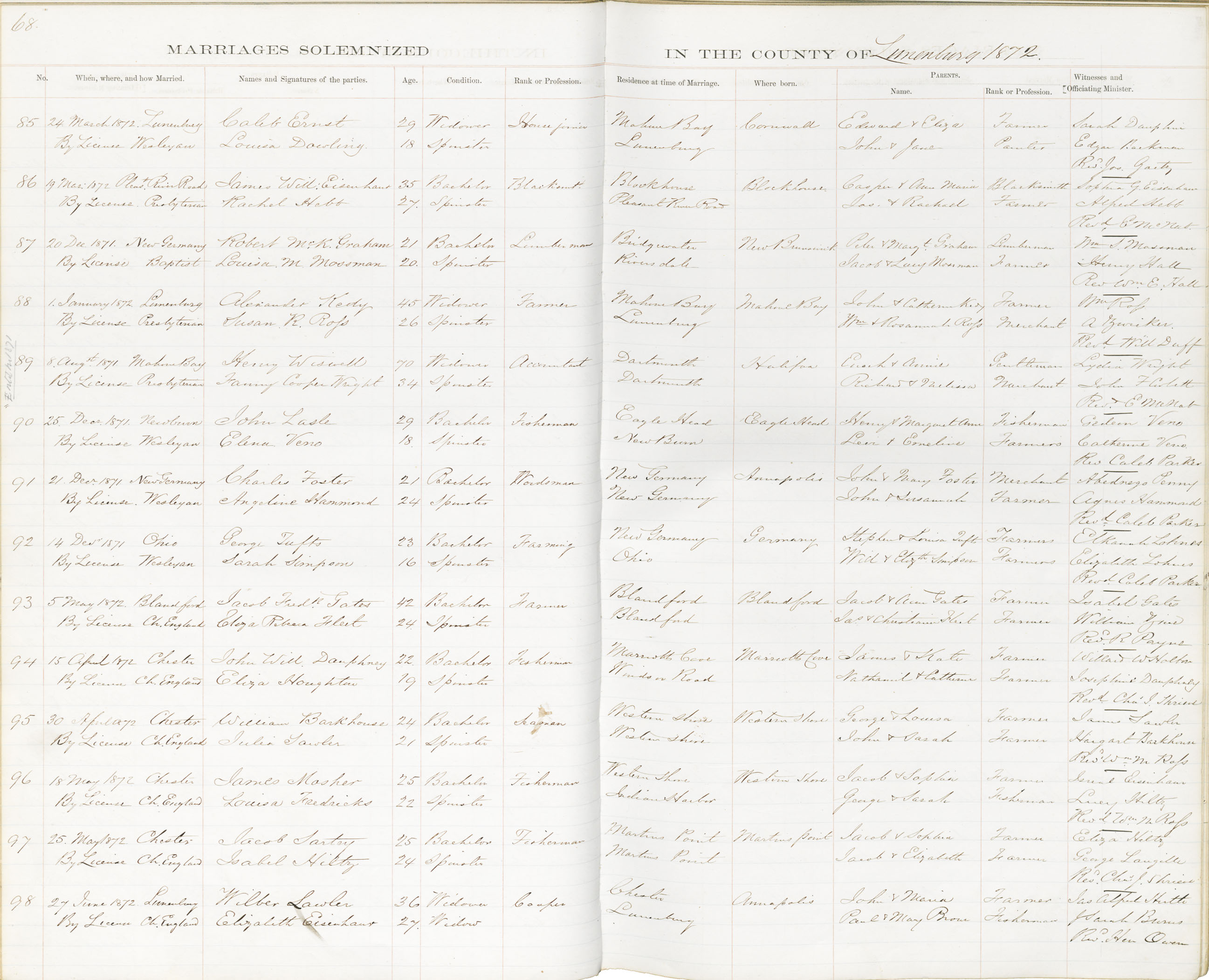 Registration: Year: 1872 book: 1828 page: 68 number: 85
