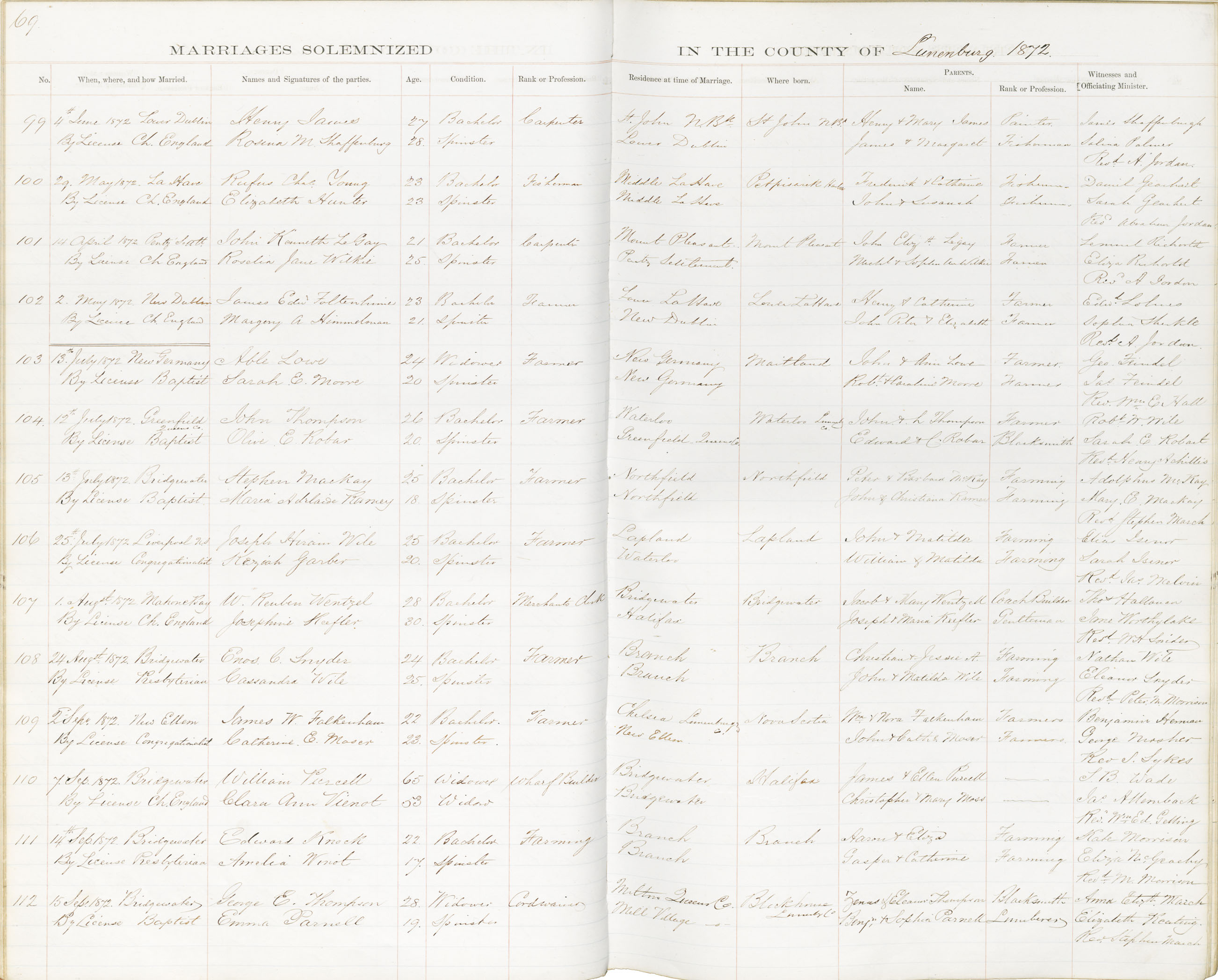 Registration: Year: 1872 book: 1828 page: 69 number: 99