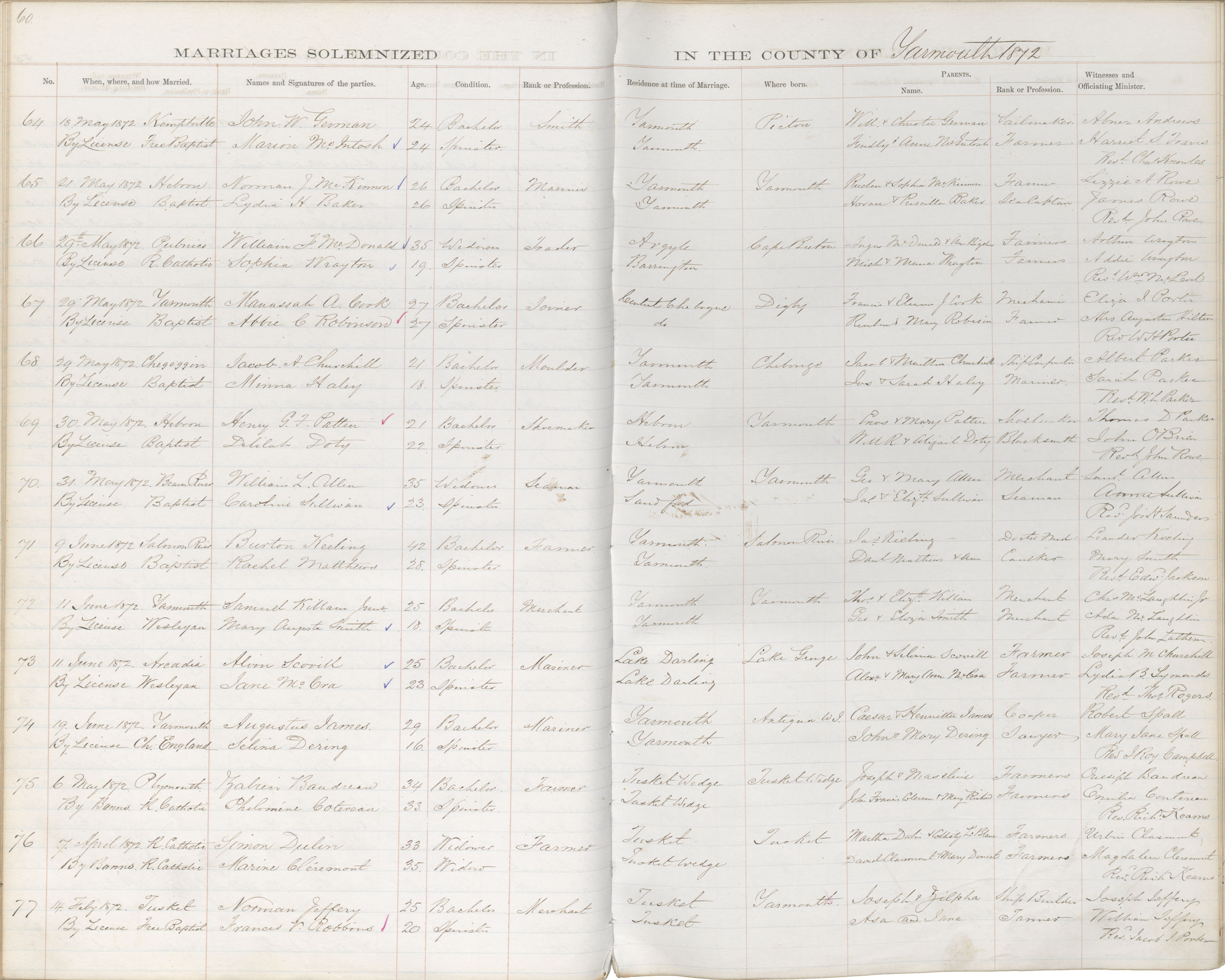 Registration: Year: 1872 book: 1839 page: 60 number: 77