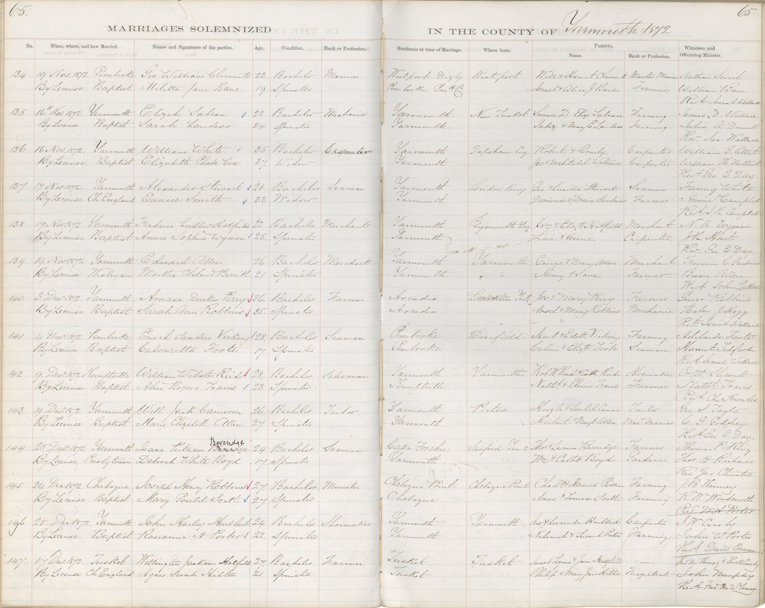 Registration: Year: 1872 book: 1839 page: 65 number: 134