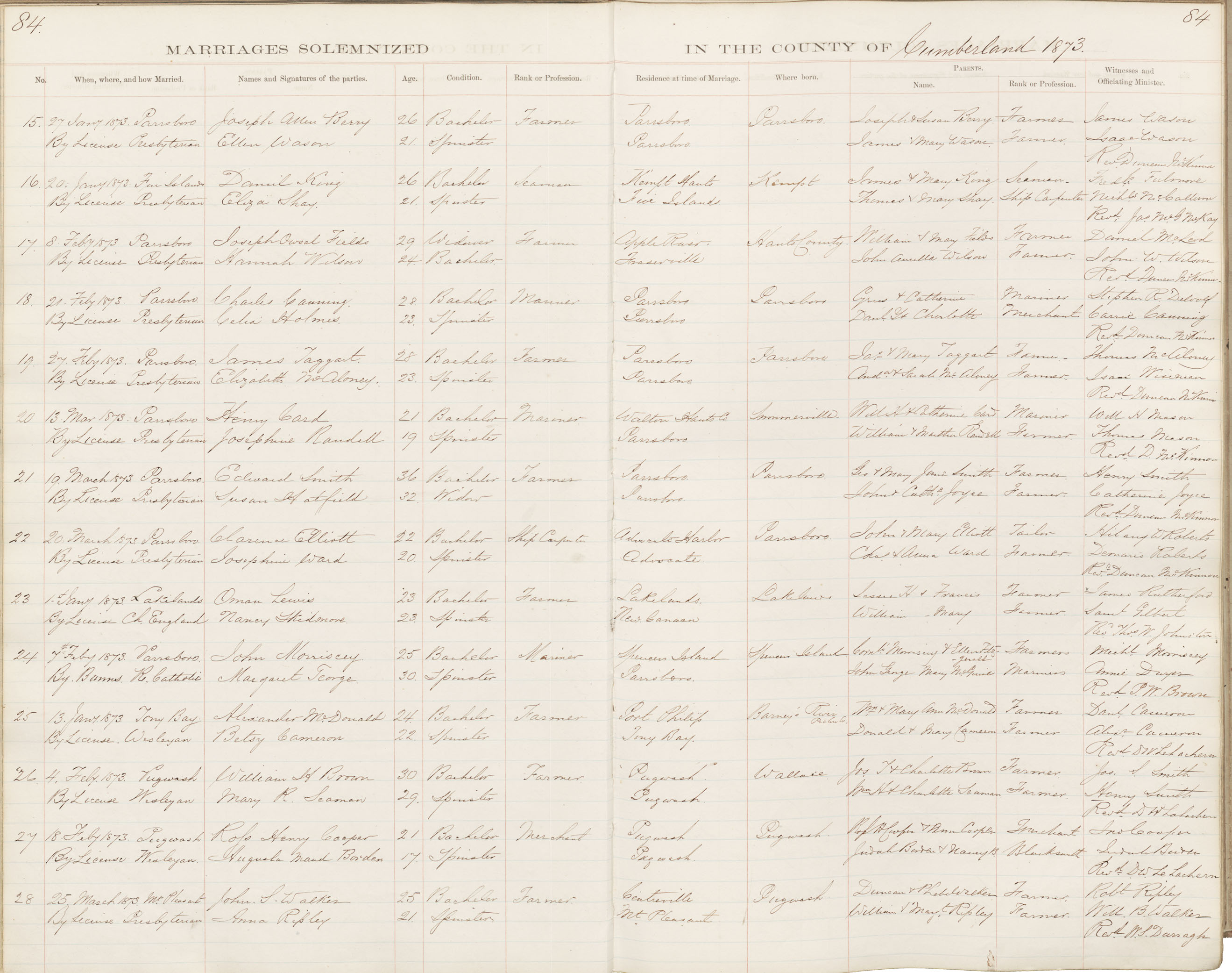 Registration: Year: 1873 book: 1809 page: 84 number: 28