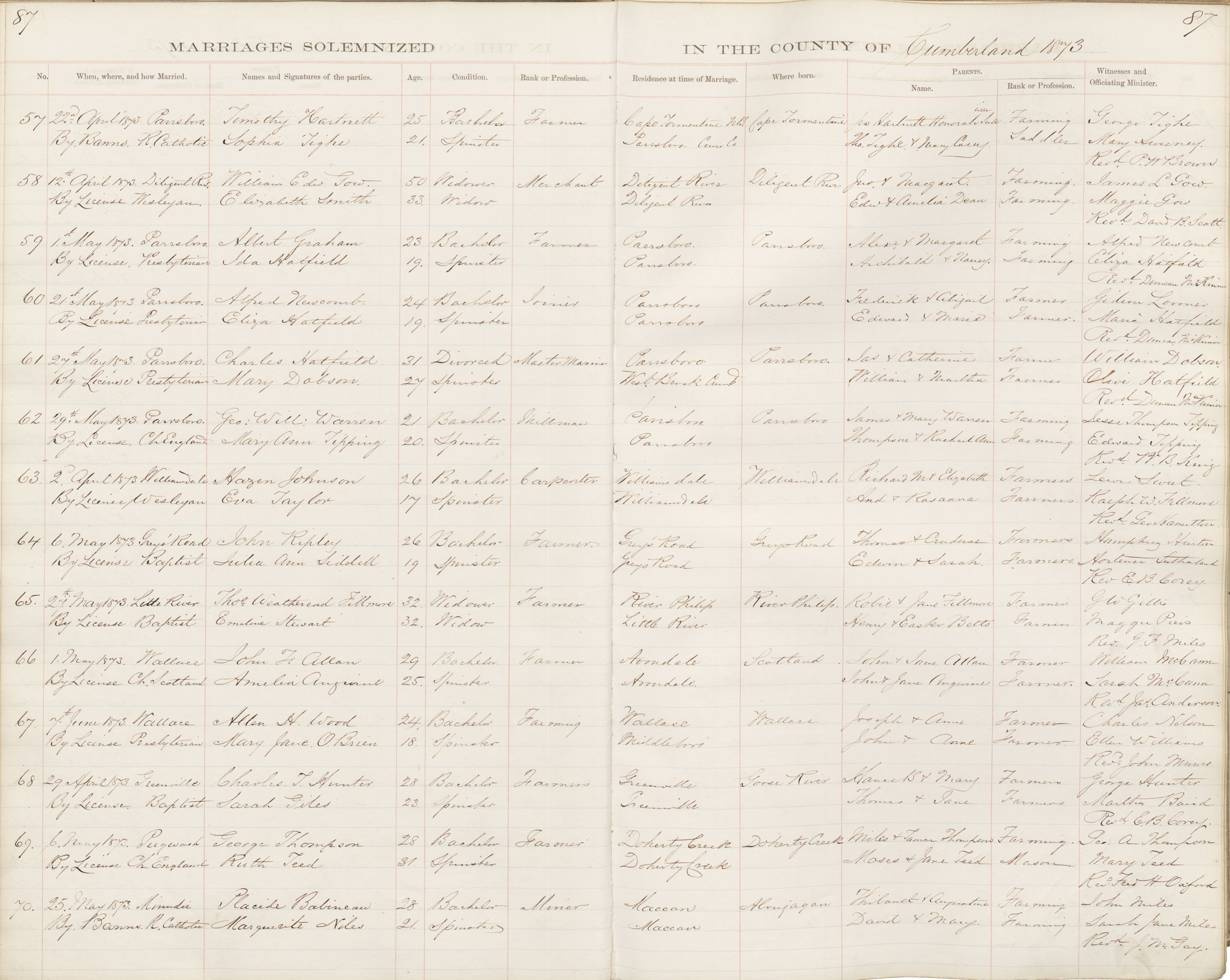 Registration: Year: 1873 book: 1809 page: 87 number: 70