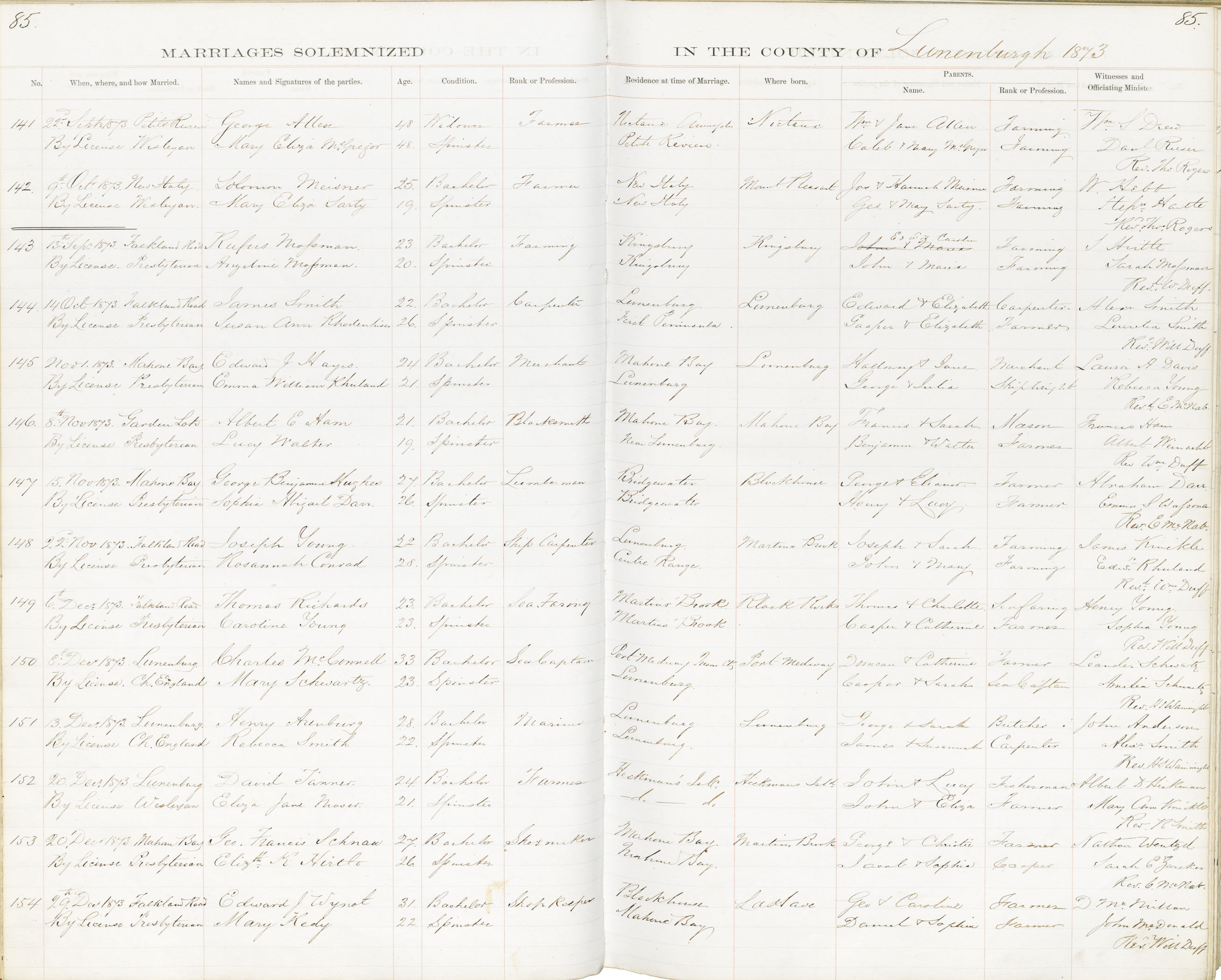 Registration: Year: 1873 book: 1828 page: 85 number: 141