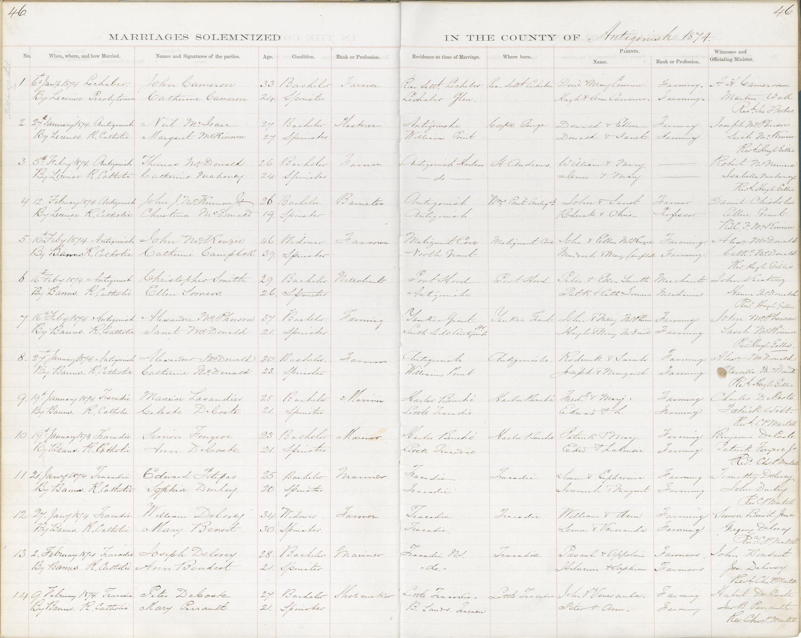Registration: Year: 1874 book: 1803 page: 46 number: 14