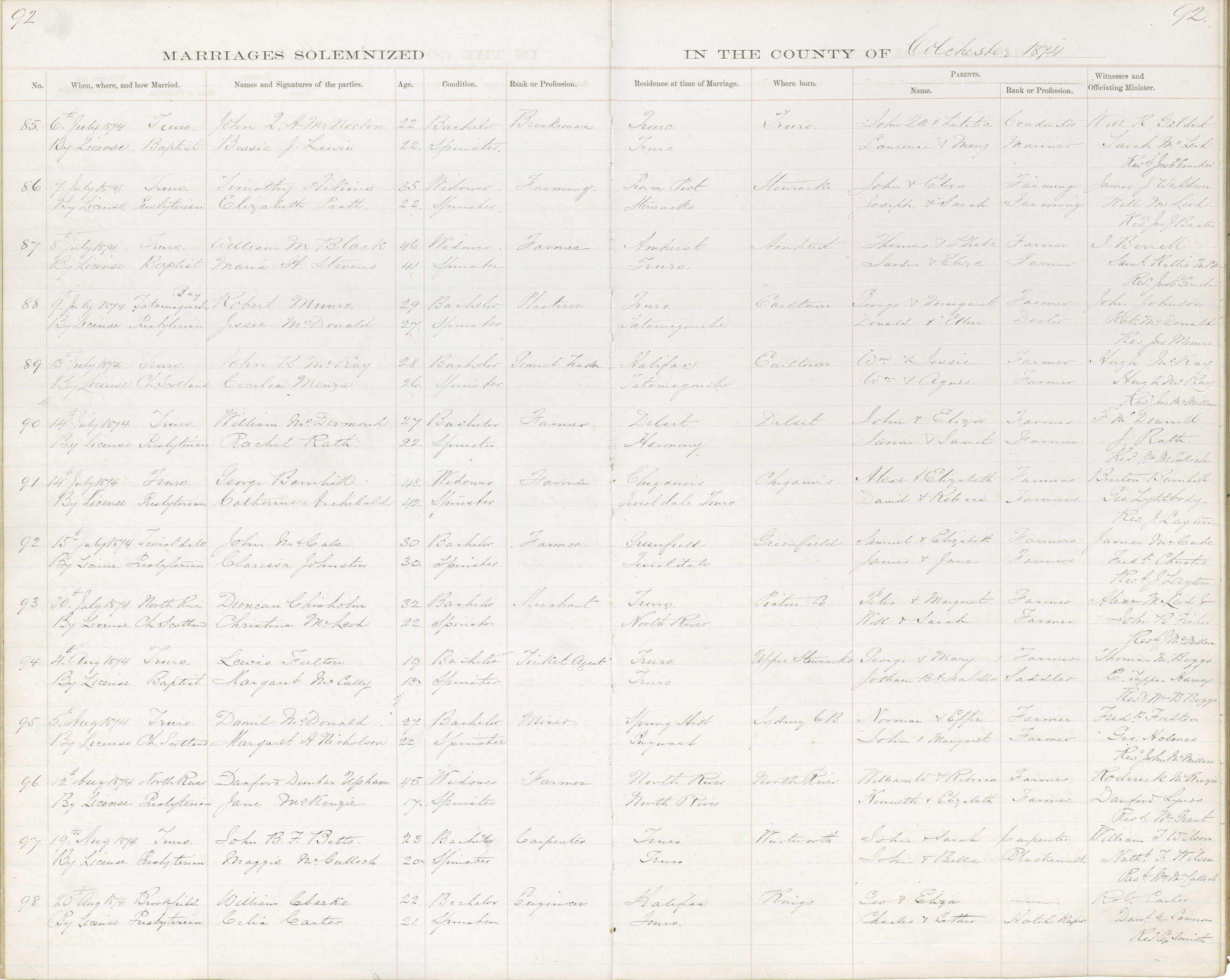 Registration: Year: 1874 book: 1806 page: 92 number: 98