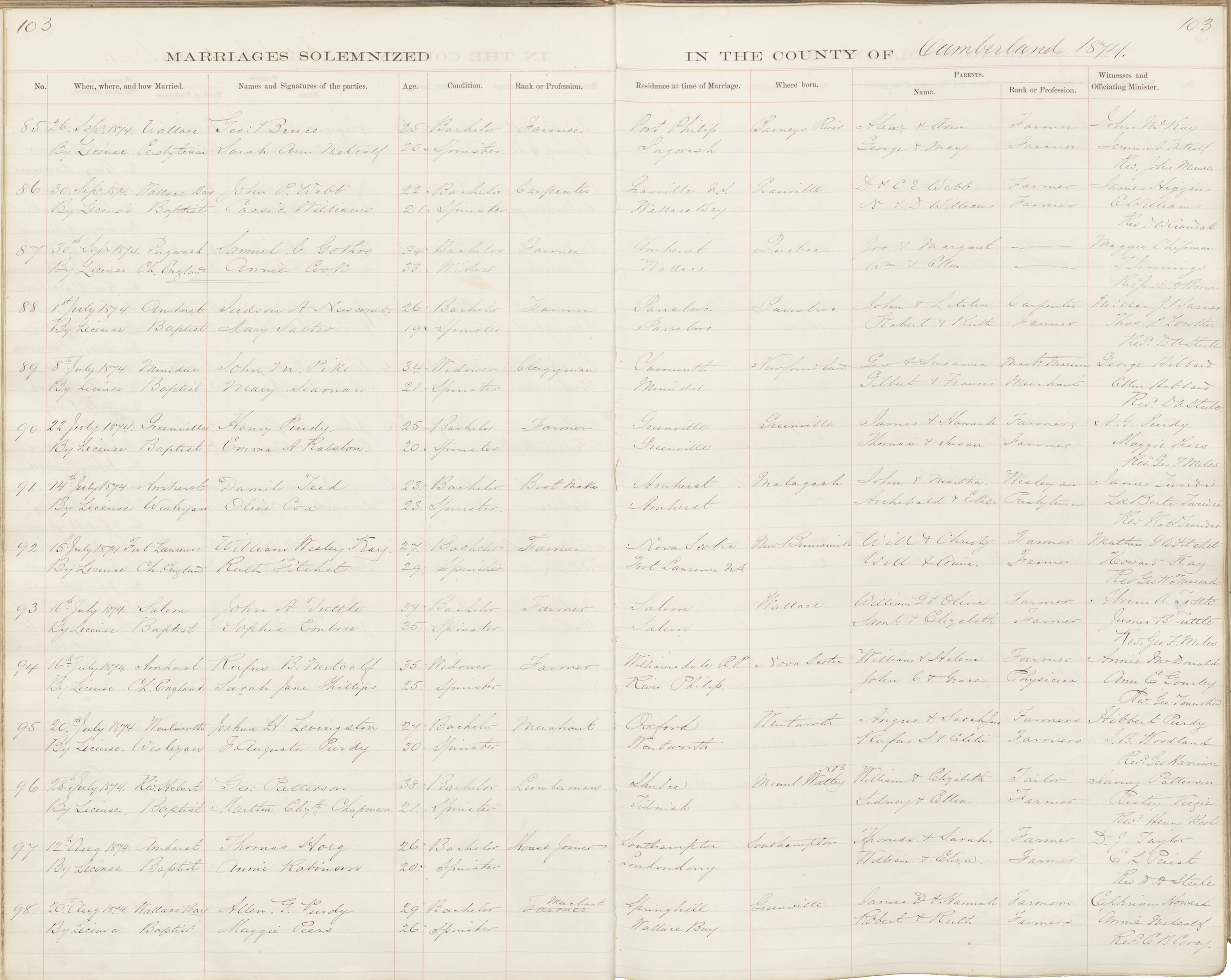 Registration: Year: 1874 book: 1809 page: 103 number: 98
