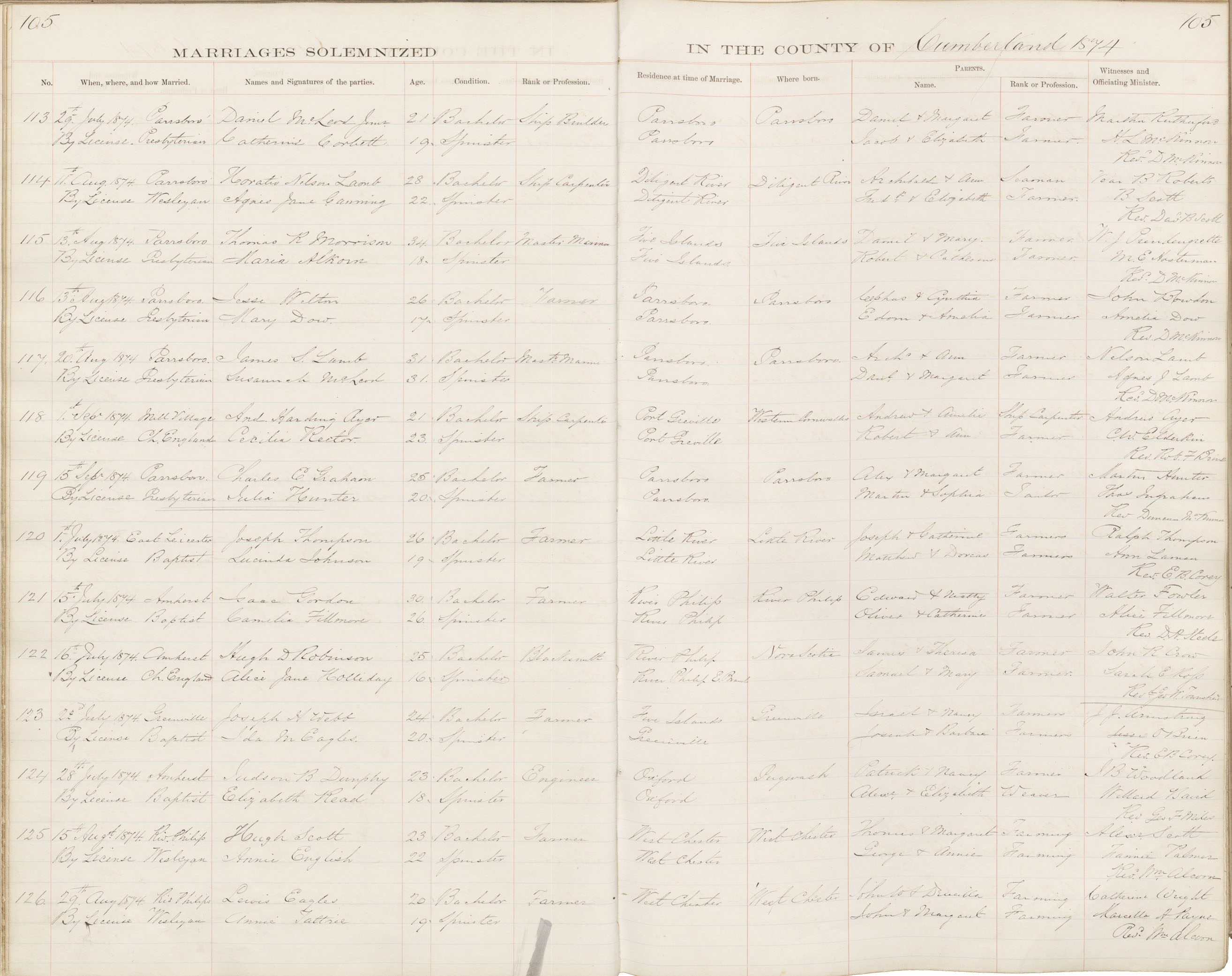 Registration: Year: 1874 book: 1809 page: 105 number: 126