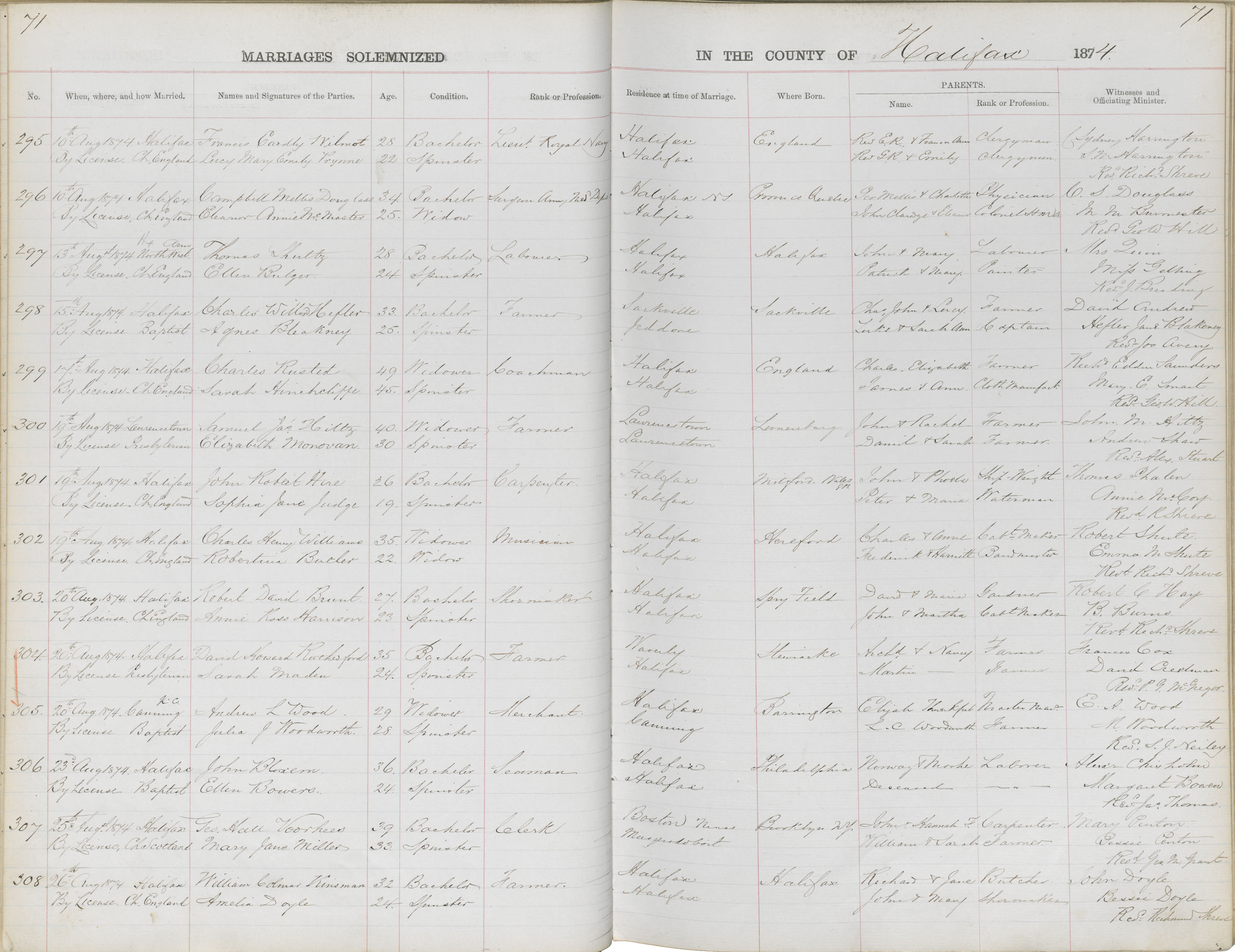 Registration: Year: 1874 book: 1816 page: 71 number: 295
